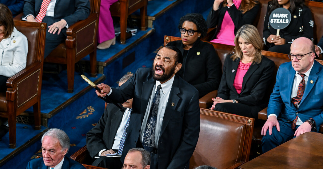 Representative Al Green, a liberal septuagenarian from Texas, was ejected from the chamber (and later censured) after disrupting the speech with a cane-waving tirade. The paddles that some Democrats waved with short messages on them — “Save Medicaid,” “Musk Steals” and one that just read “False” — were widely panned as a hokey and incoherent response. It was all out of step with the sober, centrist counter to Mr. Trump that party leaders had wanted to project that night.