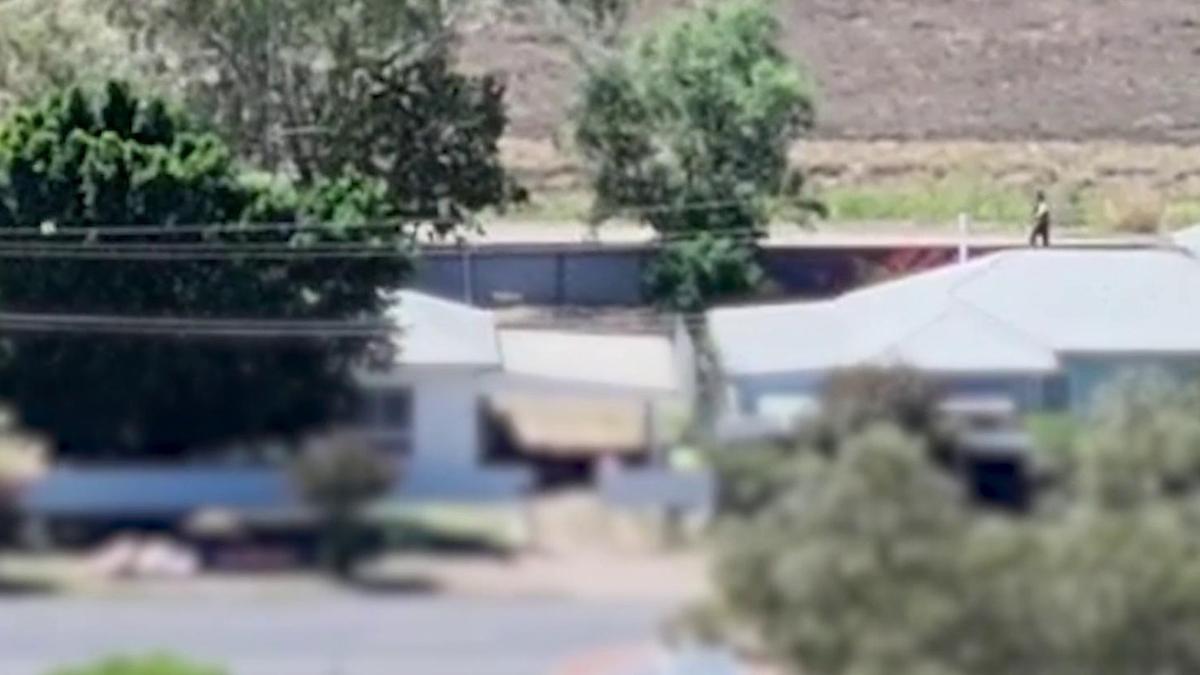 The video captured by the drone, shows the man being chased out of the backyard by a pack of dogs.