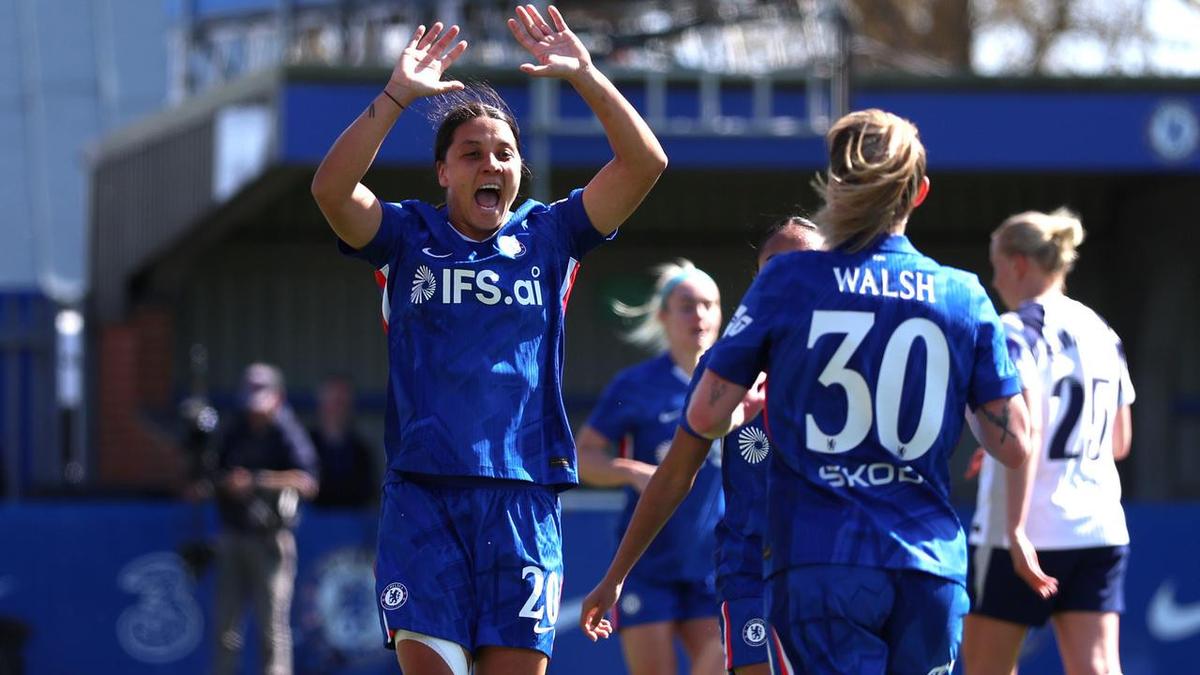 Chelsea have progressed to the semi-finals of the women’s English FA Cup with Matildas superstar Sam Kerr on target to help see off Tottenham 2-1.