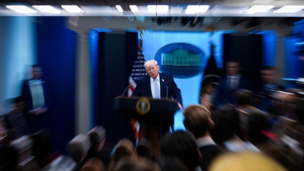 US President Donald Trump has wrapped up a lengthy news conference by complaining about the lack of support from Pacific allies in the Iran war.
