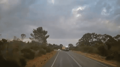 The video was captured by truck driver Andrew Cox on South Coast Highway, approximately 20km west of Esperance, and shows a large truck with three trailers rounding a corner.